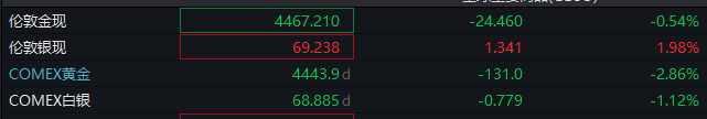 大宗商品方面,黄金期现跌幅均收窄,白银现货转涨。