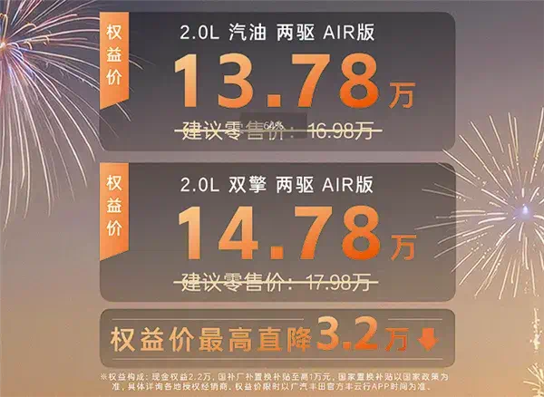 最近车圈有个挺值得聊的消息:广汽丰田推出了威兰达AIR版,权益价来到13.78万起。